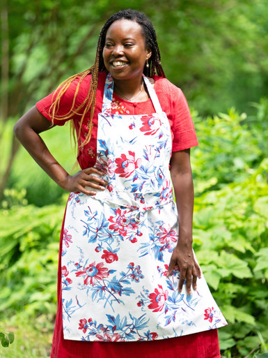 Made in durable cotton and adorned with our timeless signature designs, April's aprons last a lifetime - whether for cooking, gardening or crafting - and make a lovely gift for the aspiring and accomplished homemaker alike. 100% CottonSturdy cotton canvasCoordinating items: Tablecloths, napkins, cushion cover, chair pads, drying mat, placemats, runner, tea towelsA signature April Cornell print from 1992One large front pocketTwo buttons at neck strap for adjustable fit32" L x 11" across chest; 39" waist ties; 23" adjustable neck strap Machine wash separately in cold water, tumble dry low, warm iron